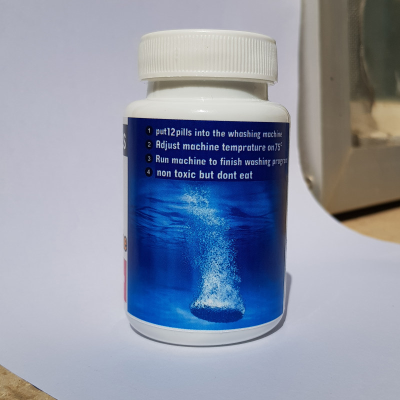 روش مصرف: 1- 12 عدد قرص جرم گیر را در محفظه لباس و یا ظروف قرار دهید. 2- دستگاه را روی برنامه شستشو با آب گرم در دمای 60 درجه تنظیم کنید. 3- اجازه دهید دستگاه برنامه شستشو را تا پایان ادامه دهد. 4- جرم گیری دستگاه شما انجام شده است.